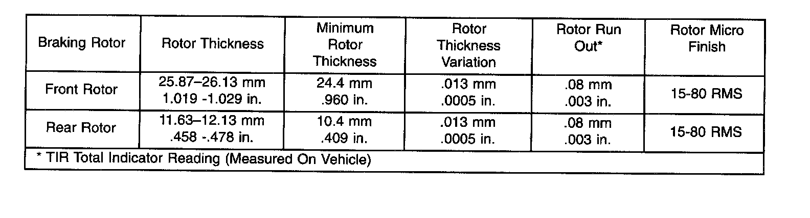 NOTE: All rotors have markings for minimum allowable thickness cast on an un-machined surface of the rotor.