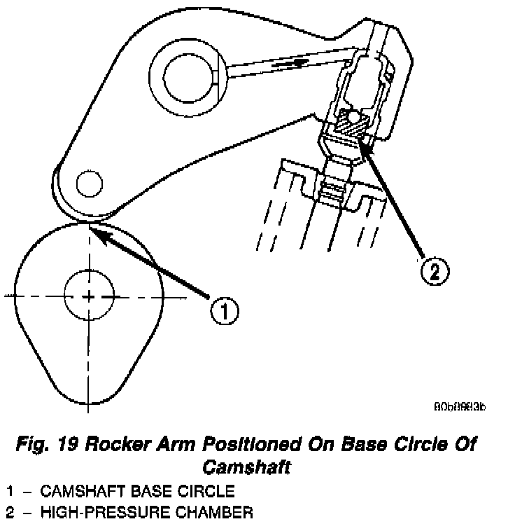 3. Ensure the rocker arm is positioned on the base circle of the cam (Fig. 19). Rotate engine as necessary.