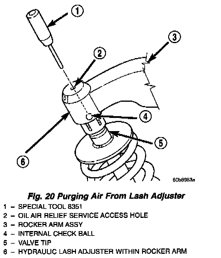 Use this procedure to manually bleed aerated oil from the lash adjuster and remove sponginess.