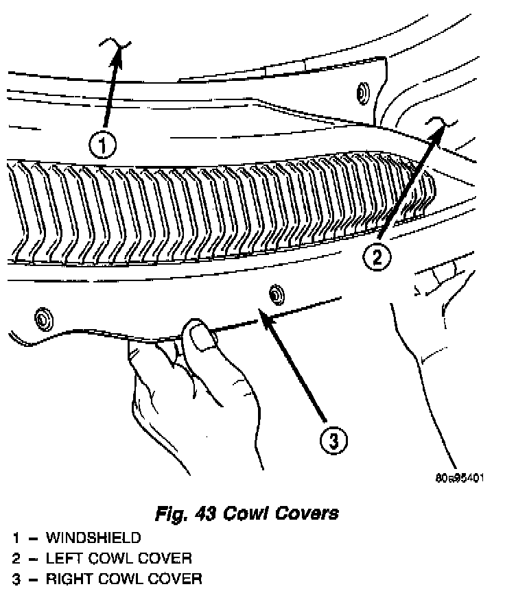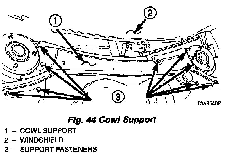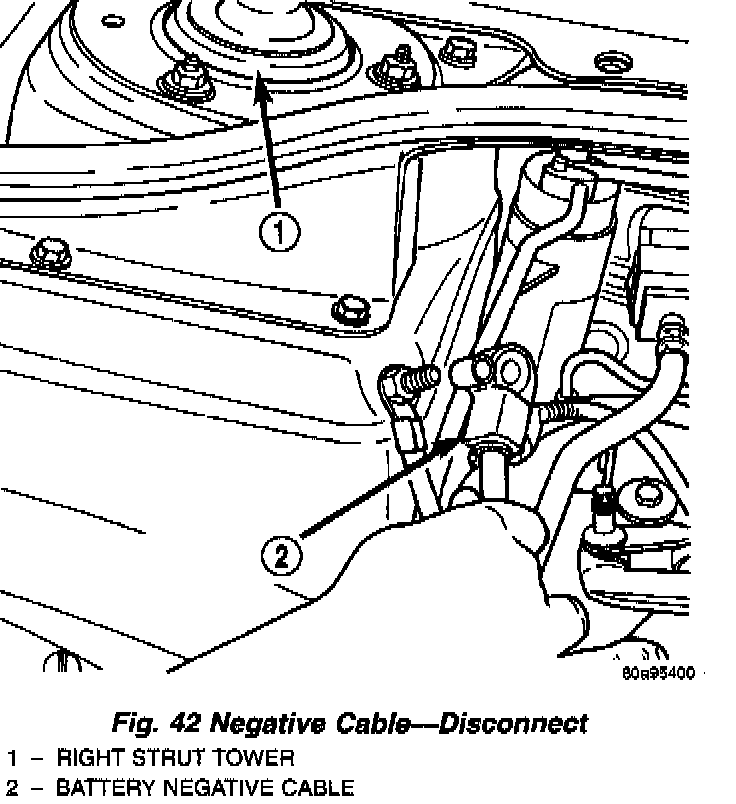 1. Disconnect negative cable at right strut tower (Fig. 42).