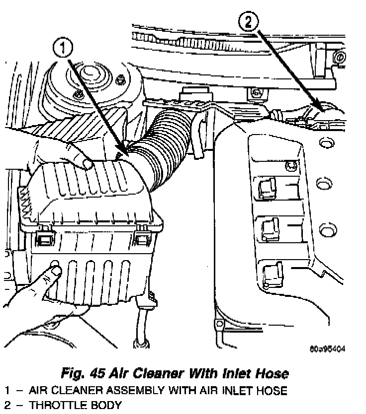 6. Remove air cleaner assembly with air inlet hose (Fig. 45).