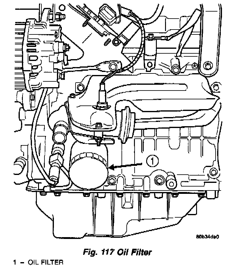 1. Using a suitable oil filter wrench, unscrew filter from hand and discard (Fig. 117).