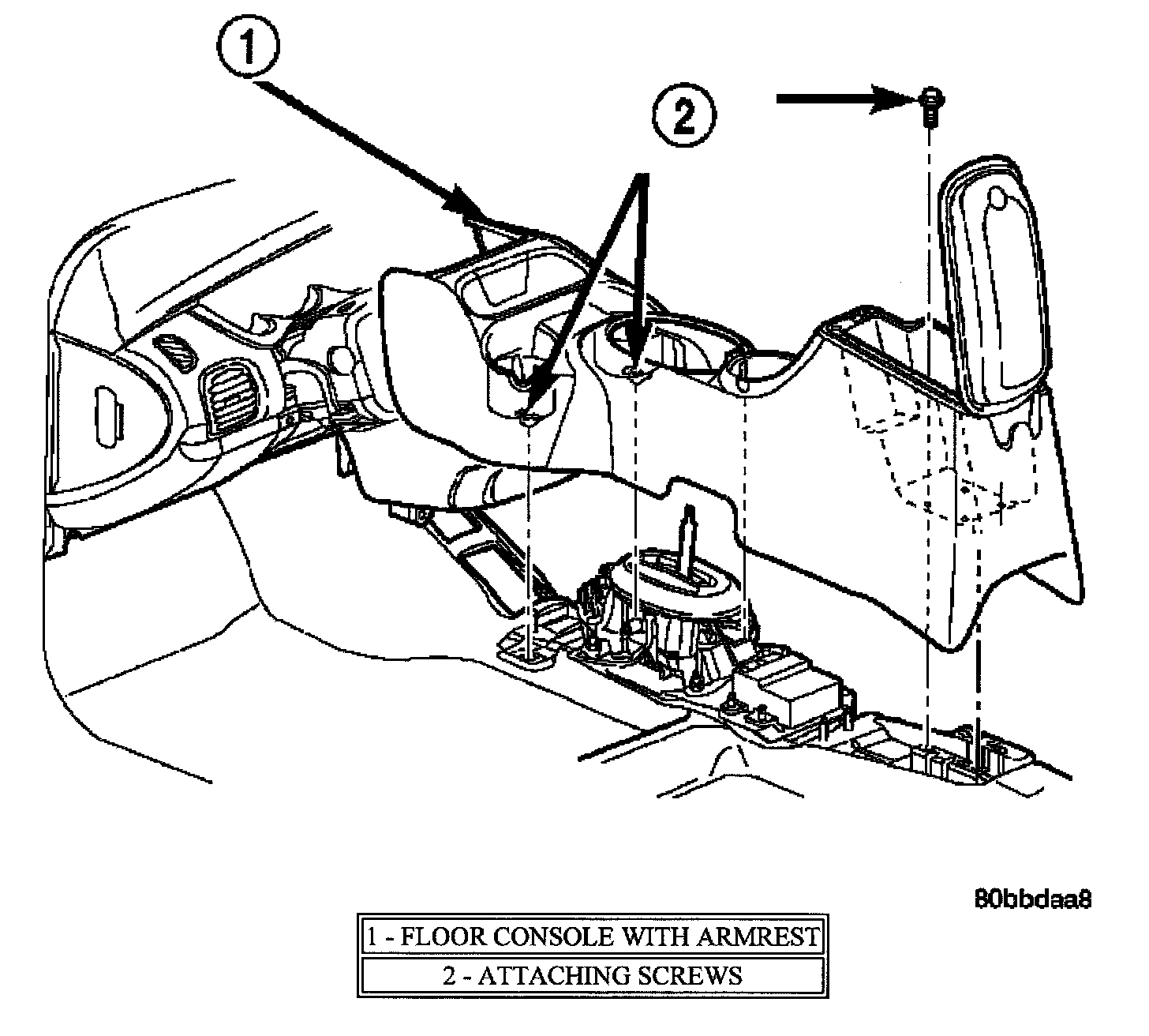 2. Remove screw cover plugs over screws just rearward of cup holders.