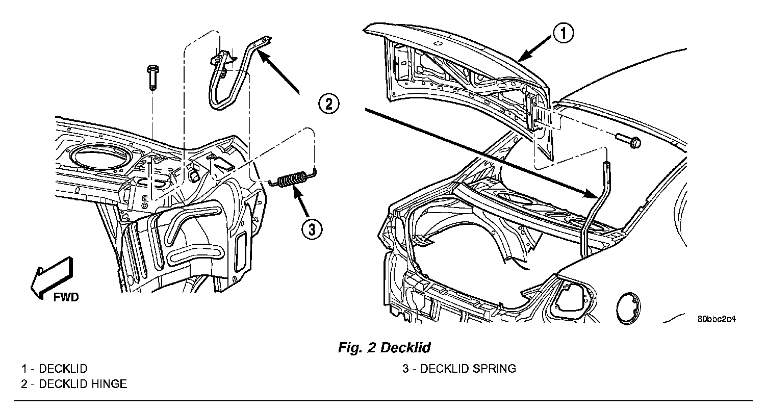 2. Remove clip attaching decklid lock cylinder to decklid.