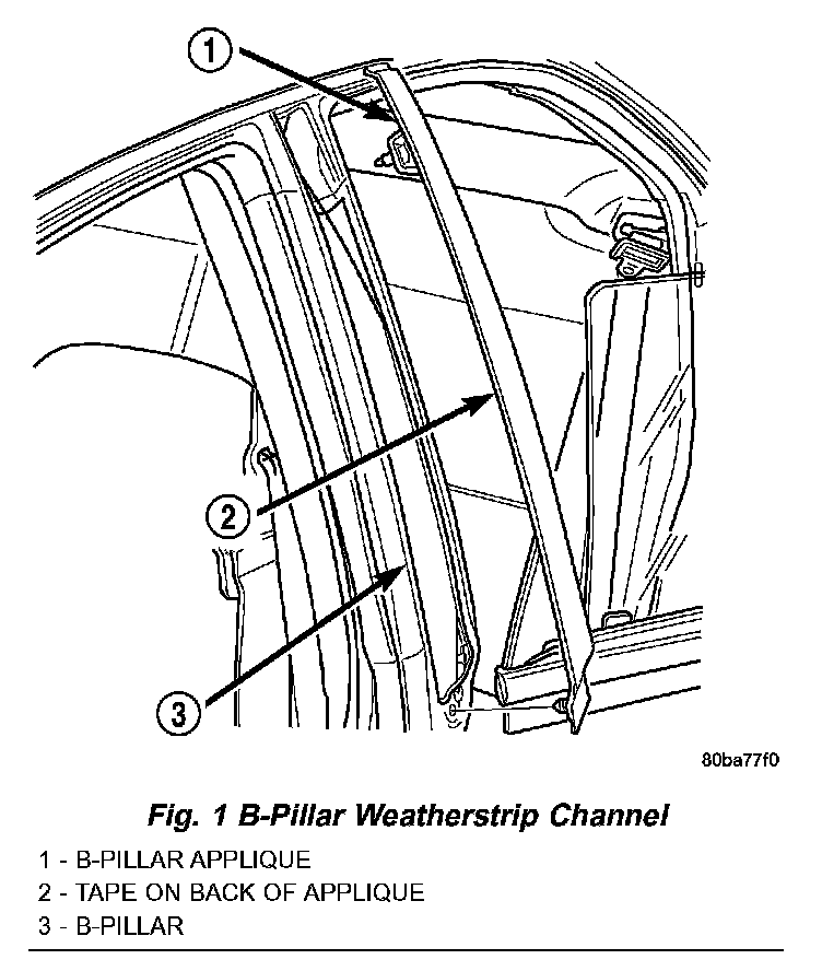 1. Remove B-pillar applique (Fig. 1).