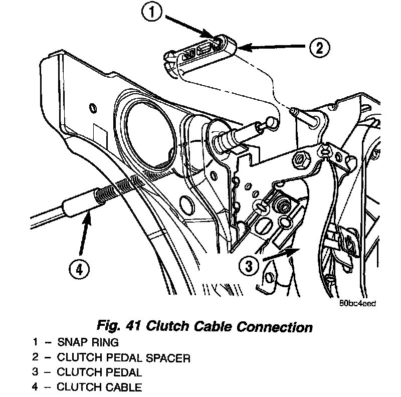 4. Disconnect the clutch cable from the clutch pedal spacer.