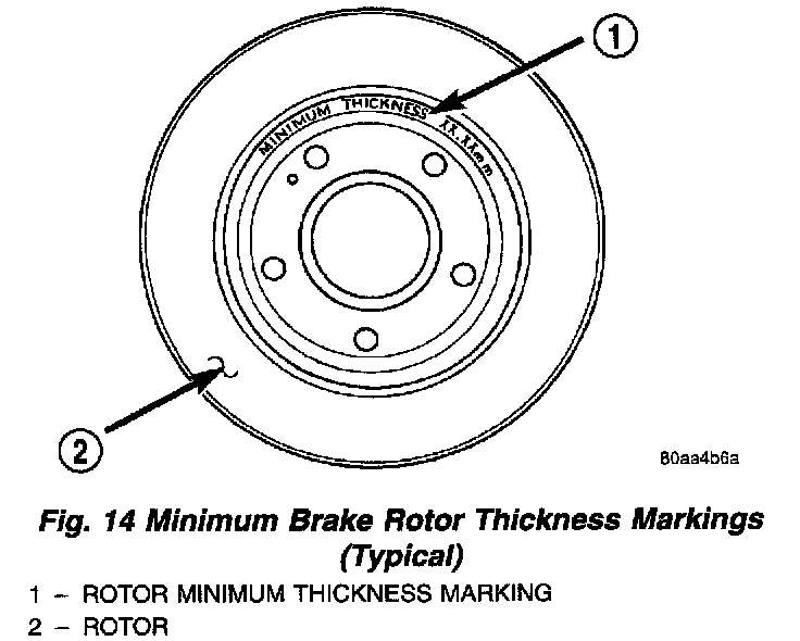 Minimum thickness specifications are cast on the rotor's unmachined surface. Limits can also be found in the table at the end of this brake rotor information.