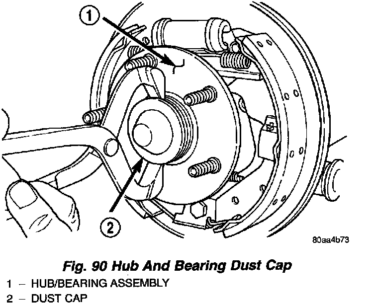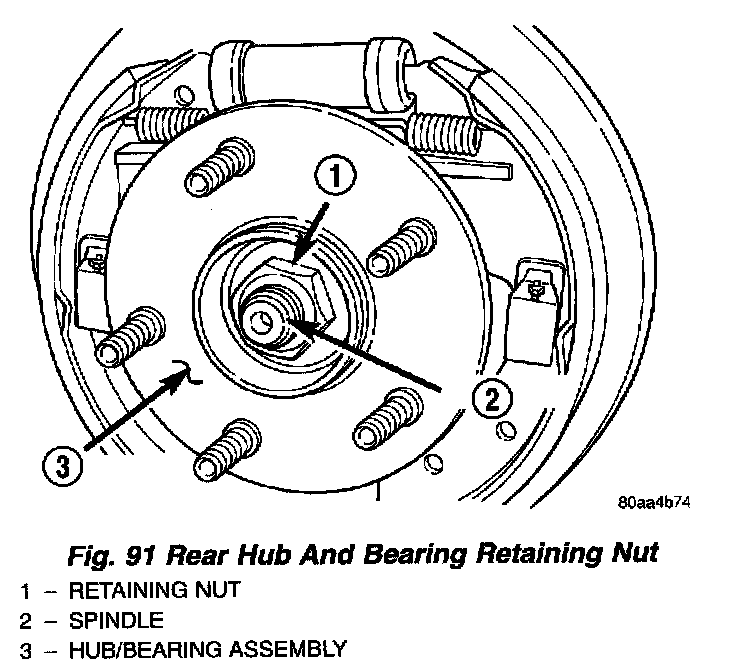 8. Install the rear hub and bearing assembly on the spindle. Install a new hub and bearing retaining nut. Tighten the retaining nut to a torque of 217 Nm (160 ft. lbs.). Install dust cap.