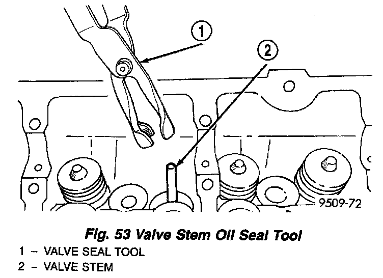 6. Remove valve stem seal by using a valve stem seal tool (Fig. 53).