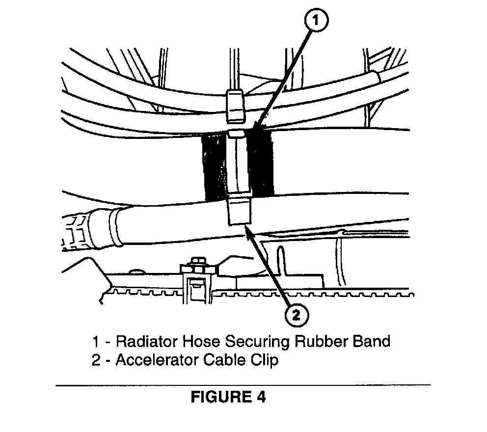 8. Install the accelerator cable clip over the center rubber band (Figure 4).