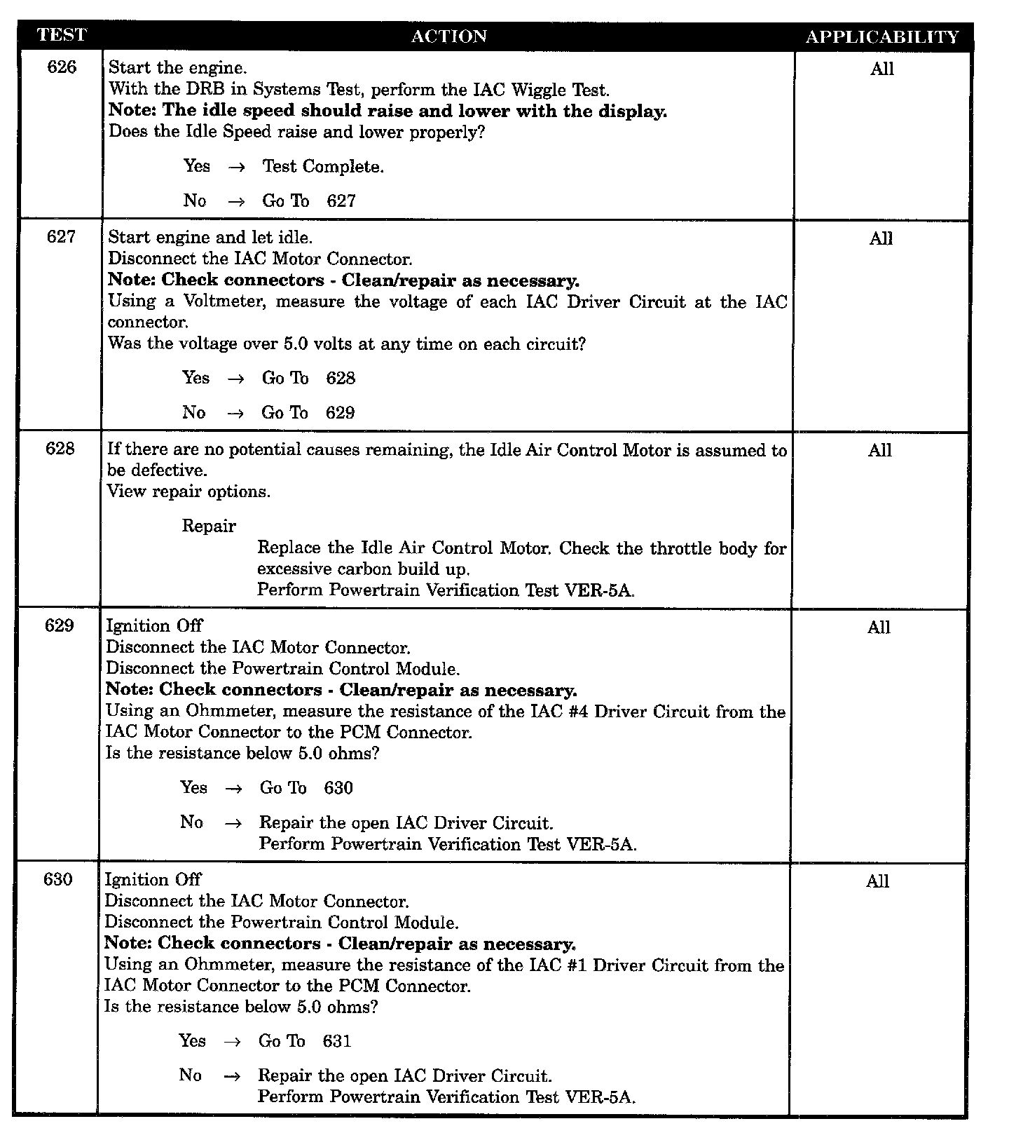 CHECKING IAC MOTOR OPERATION WITH NO DTC'S