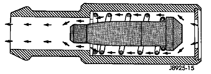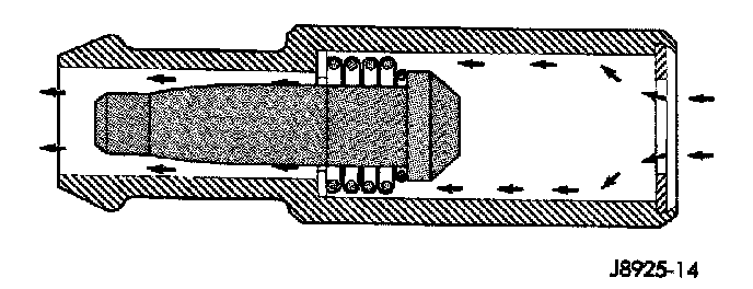 When the engine is not operating or during an engine backfire, the spring forces the plunger back against the seat. This prevents vapors from flowing through the valve.