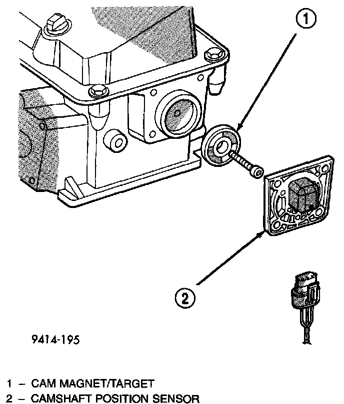 The Camshaft Position Sensor attaches to the rear of the cylinder head. The PCM determines fuel injection synchronization and cylinder identification from inputs provided by the Camshaft Position Sensor and Crankshaft Position Sensor. From the two inputs, the PCM determines crankshaft position.