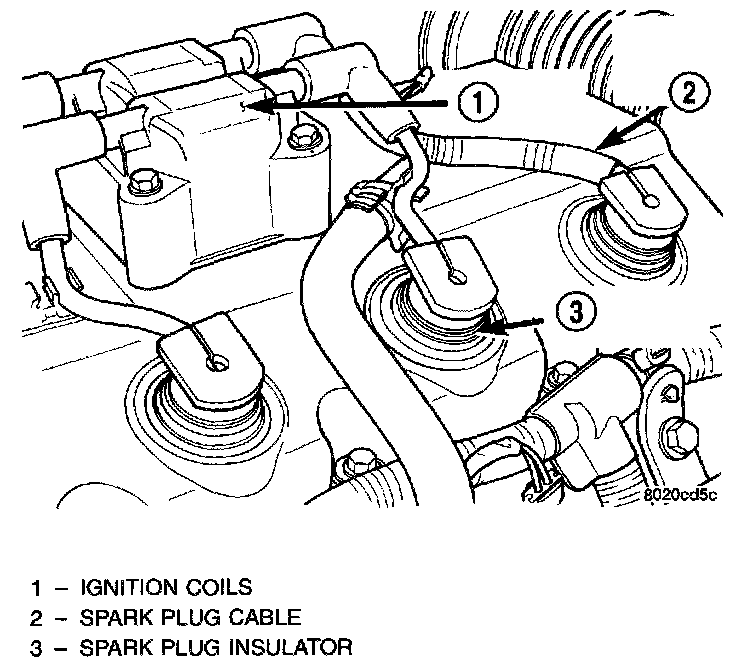 Check the spark plug cable connections for good contact at the coil and spark plugs. Terminals should be fully seated. The nipples and spark plug covers should be in good condition. Nipples should fit tightly on the coil. Spark plug boot should completely cover the spark plug hole in the cylinder head cover. Install the boot until the terminal snaps over the spark plug. A snap must be felt to ensure the spark plug cable terminal engaged the spark plug.