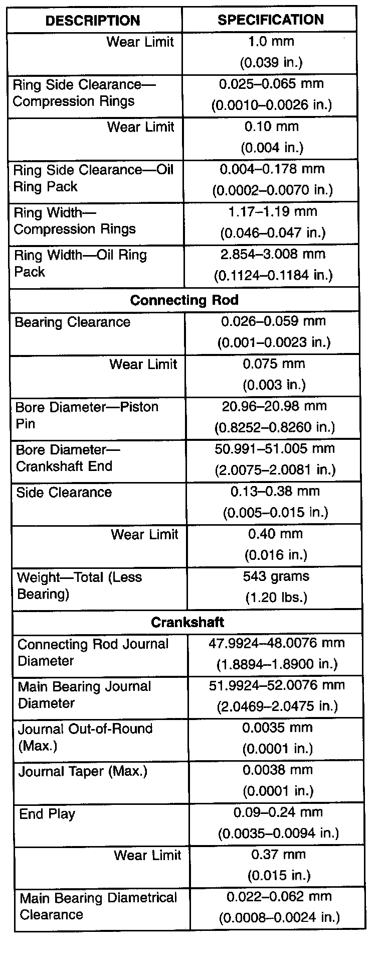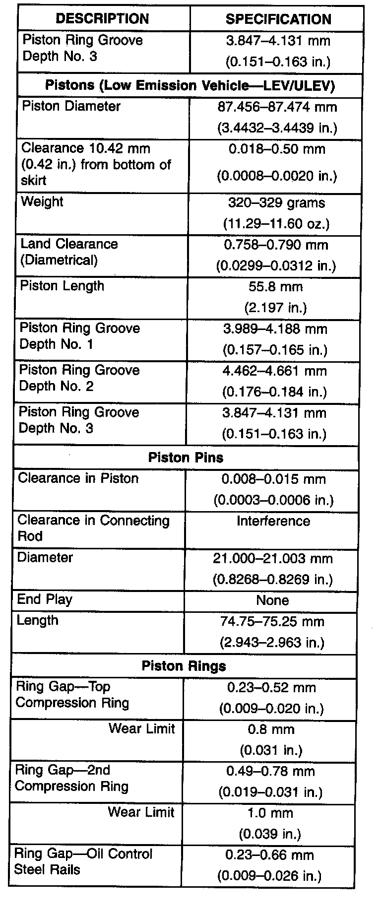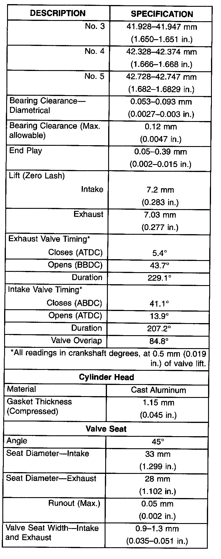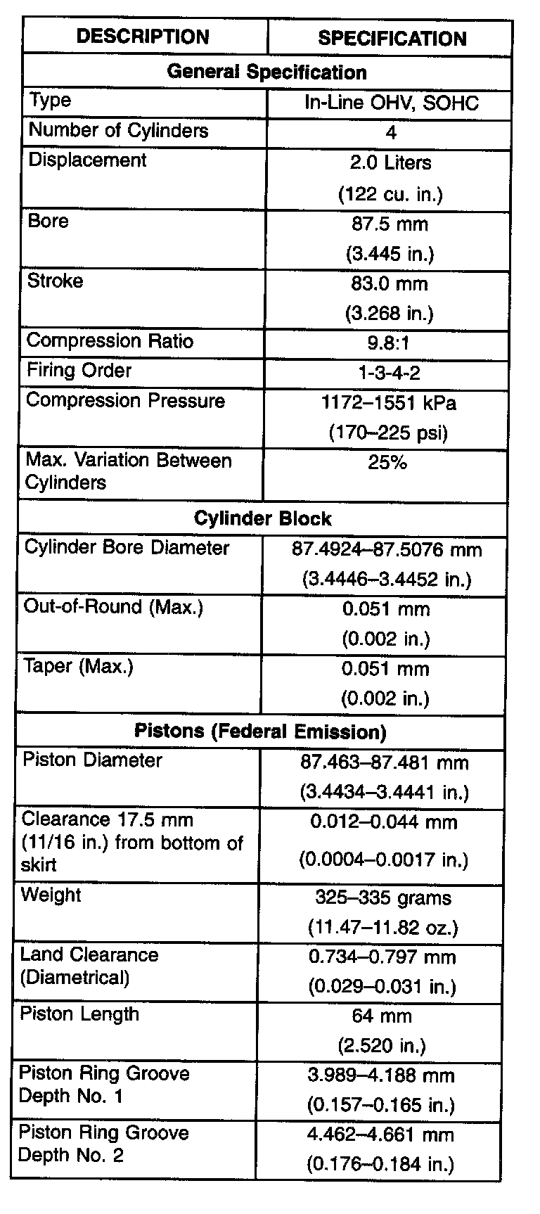 Engine Specifications