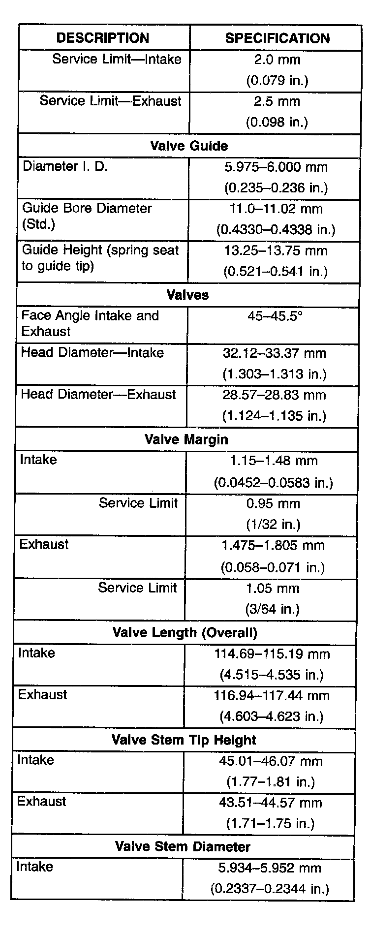 Torque Specifications