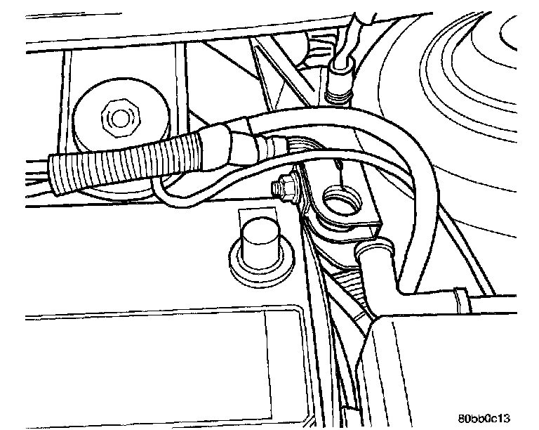 7. Disconnect the generator field circuit wiring connector. Push the RED locking tab to release.