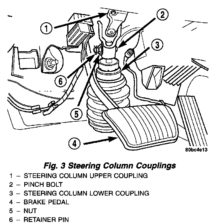 NOTE: Do not tighten the coupling pinch bolt anytime the vehicle is not at curb riding height. It may cause unwanted conditions within the steering column if the vehicle is suspended in any manner when the pinch bolt is tightened.