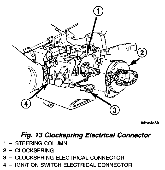 21. Disconnect the wiring harness electrical connector from the clockspring.