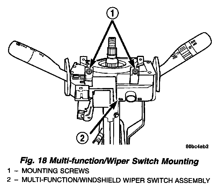 c. Remove the two screws securing the multifunction/windshield wiper switch to the steering column. Pull the switch straight away from the column to remove it.