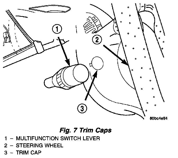 8. If the vehicle is not equipped with speed control, remove the airbag mounting screw trim caps from the steering wheel rear cover. There is one on each side of the steering wheel.