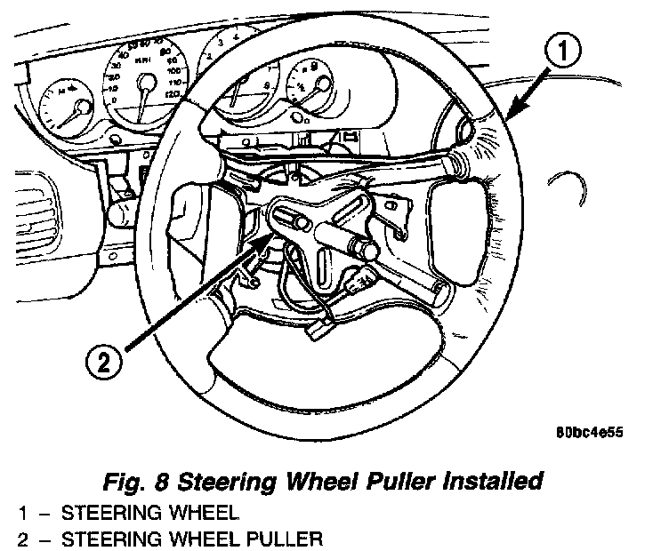 12. Install a steering wheel puller on the steering wheel.