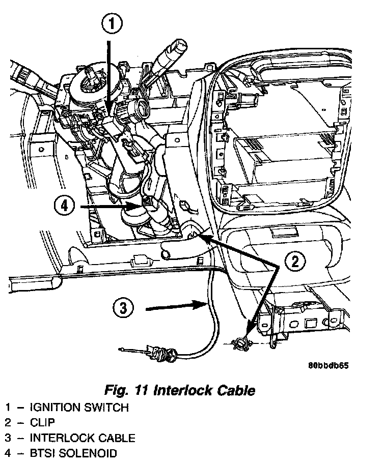 7. If the vehicle is equipped with an automatic transaxle, connect the automatic transaxle ignition interlock cable to the steering column by pushing the end of the cable into the back side of the ignition cylinder housing until it snaps into place.