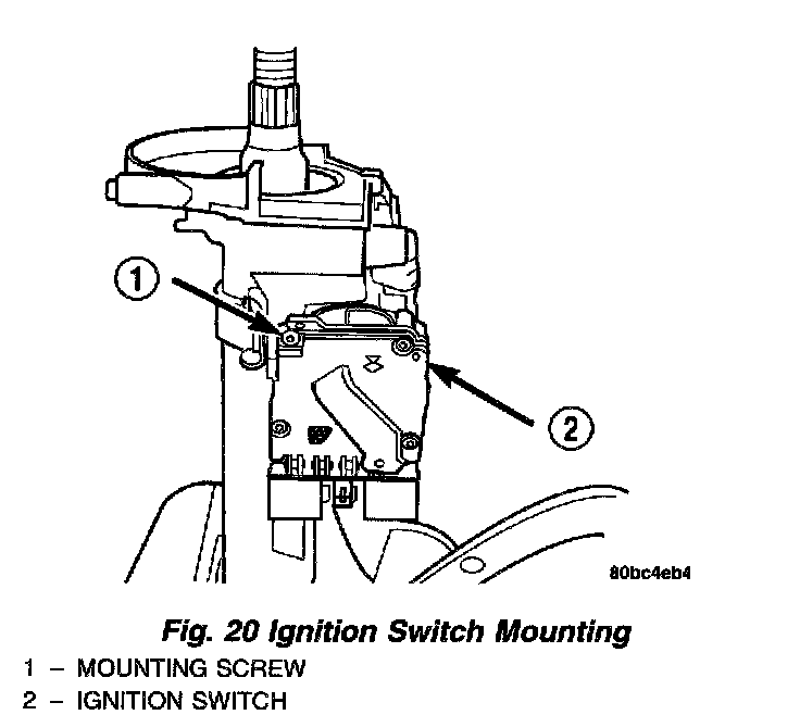 f. Remove the ignition switch from the steering column by first removing the mounting screw. Once the screw is removed, pull the switch straight out away from the column ignition cylinder housing.