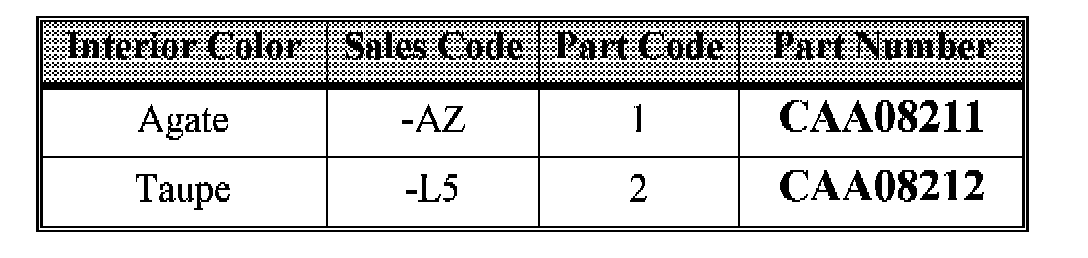 ^ Entering the VIN to DIAL System VIP Function (sales code information) along with the above table (all dealers).