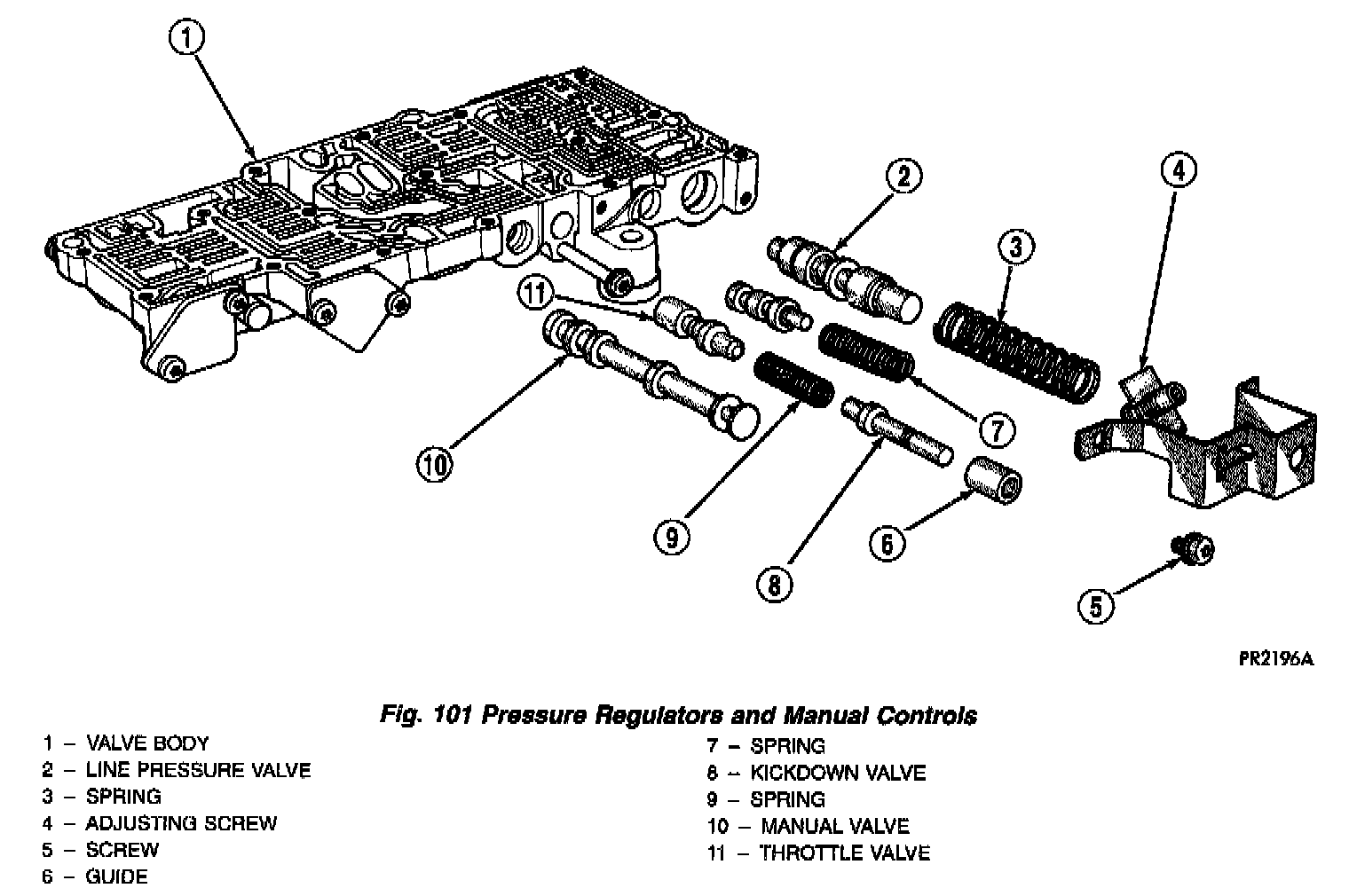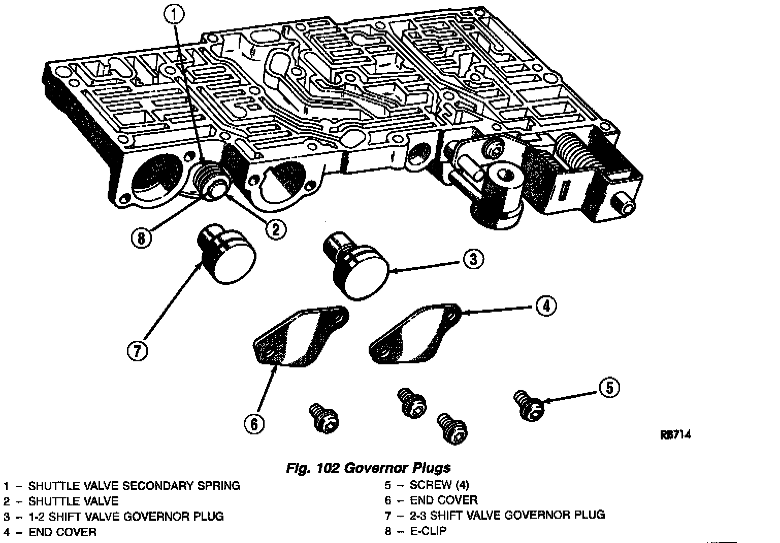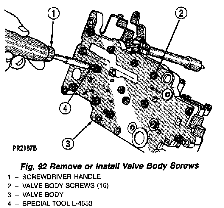 NOTE: Tighten all valve body screws to 5 Nm (40 in. lbs.)CAUTION: Do not clamp any portion of valve body or transfer plate in a vise. Any slight distortion of the aluminum body or transfer plate will result in sticking valves, excessive leakage, or both. When removing or installing valves or plugs, slide them in or out carefully. Do not use force.