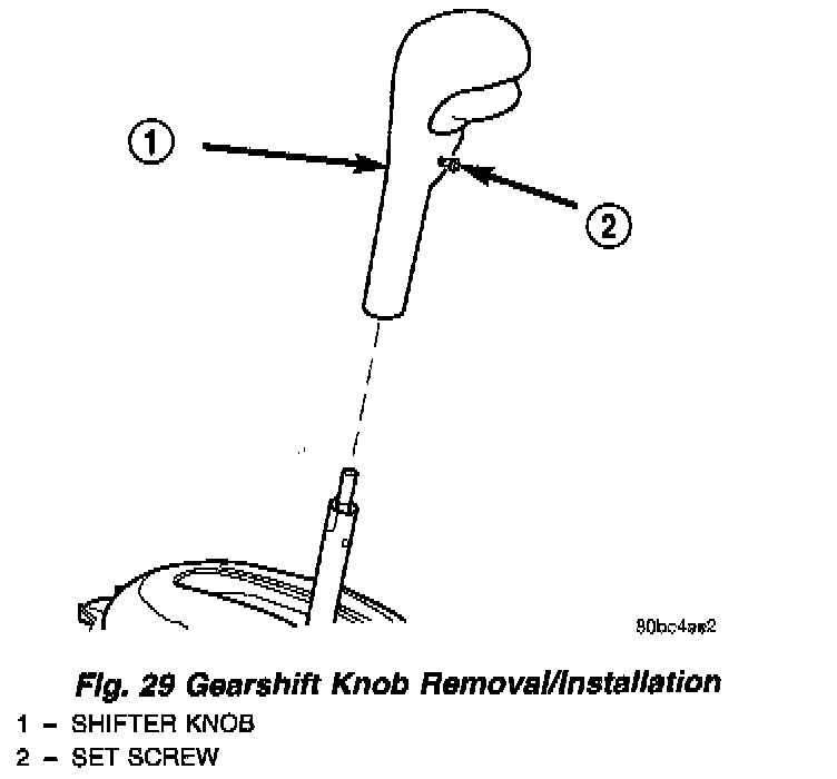 15. Install gearshift knob and tighten set screw to 2 Nm (15 inch lbs.) torque (Fig. 29).