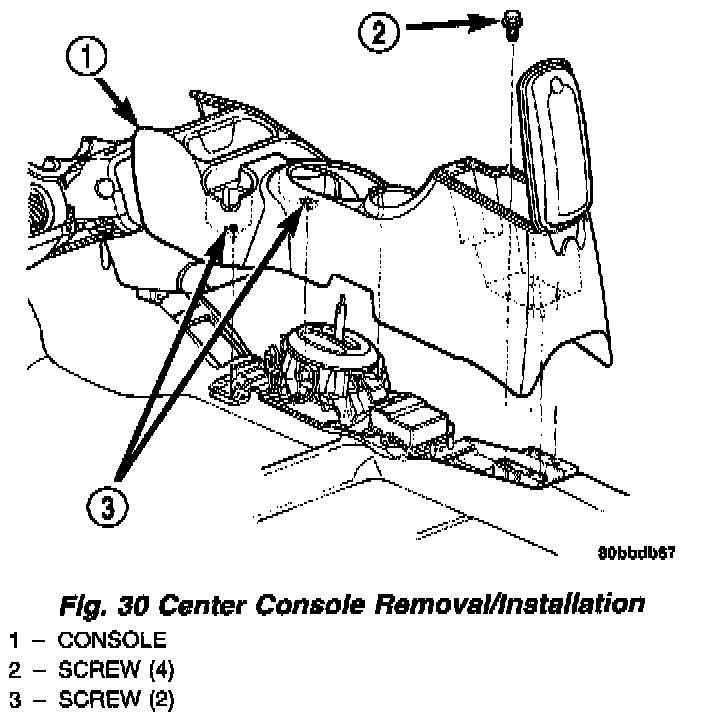 3. Remove the center console assembly as shown in (Fig. 30).