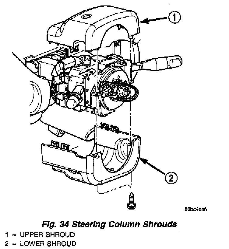 7. Remove the steering column upper and lower shrouds (Fig. 34).