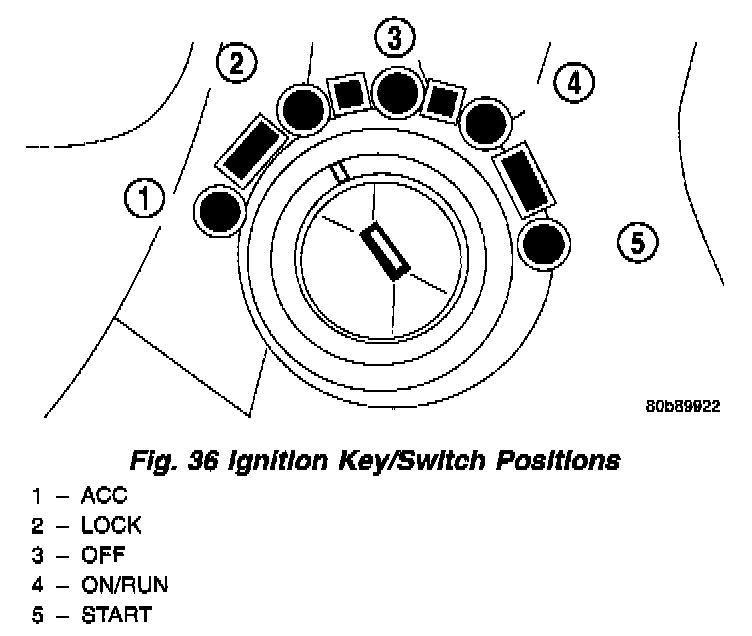2. Turn the ignition key to the "OFF" or "ON/ RUN" position (Fig. 36).