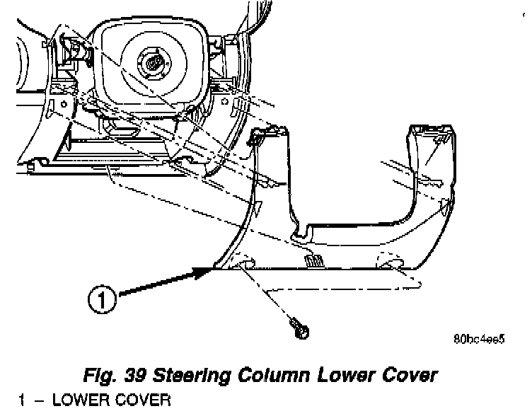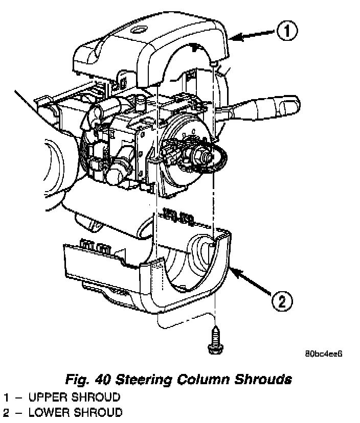 2. Remove the steering column upper and lower shrouds (Fig. 40).