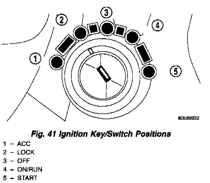 3. Turn the ignition key to the "OFF" or "ON/ RUN" position (Fig. 41).