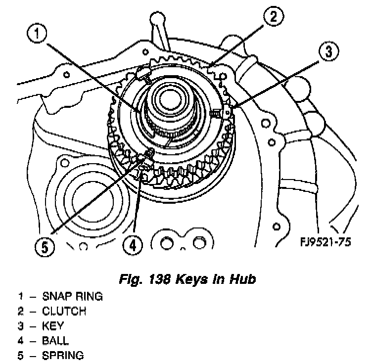 6. Line up stop ring tang over the keys in the hub (Fig. 138). Install stop rings. Center the keys and balls by pushing on both stop rings.