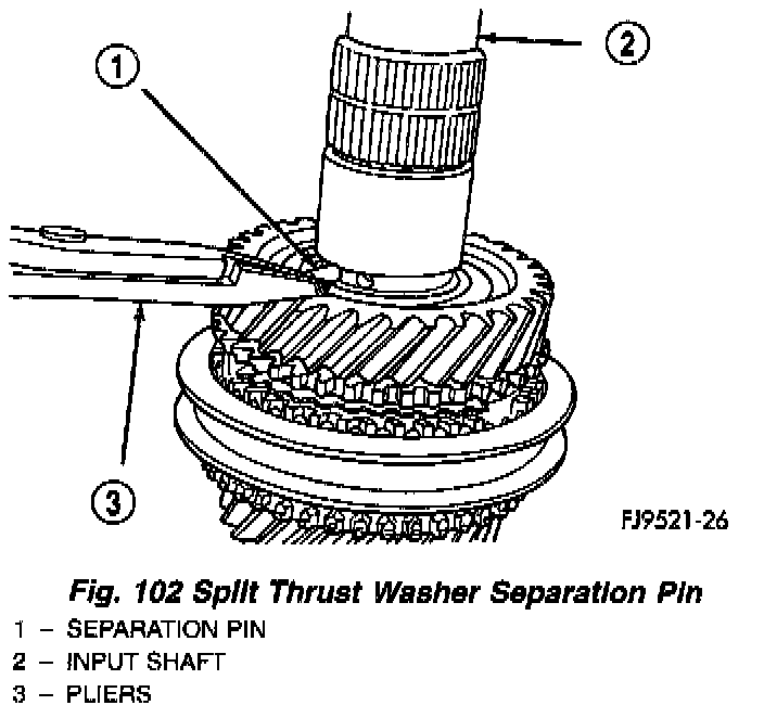 8. Install split thrust washer onto input shaft (Fig. 110).