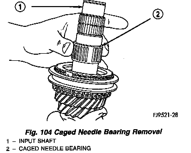 8. Remove 4th gear caged needle bearing (Fig. 104). Check the caged needle bearing for a broken retention spring.
