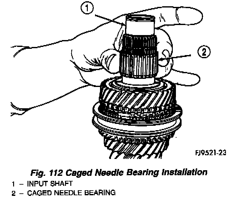 10. Install 5th gear caged needle bearing (Fig. 112).
