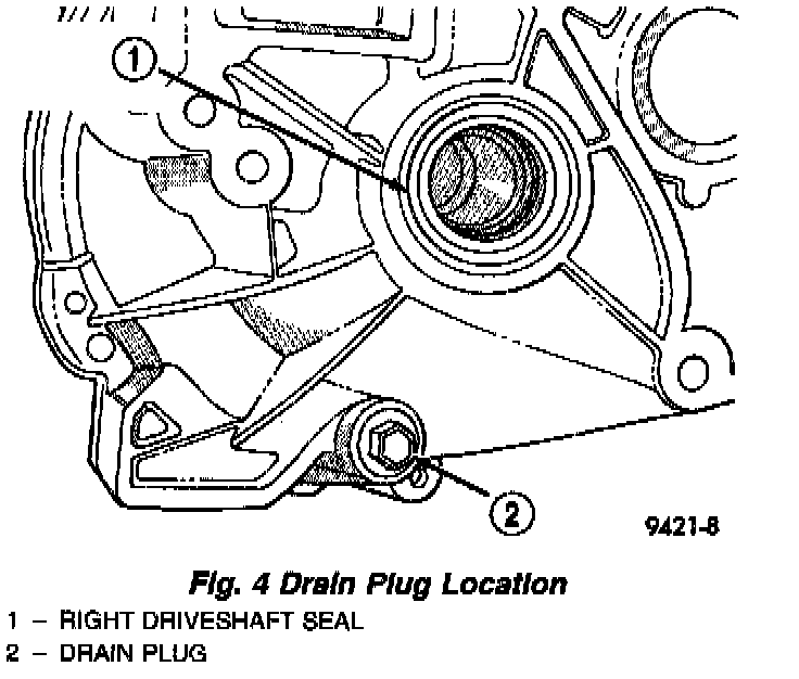 All NV T350 (A-578) transaxles are equipped with a drain plug. The drain plug is located on the lower right side of the transaxle differential housing (Fig. 4). Tighten drain plug to 28 Nm (250 inch lbs.).