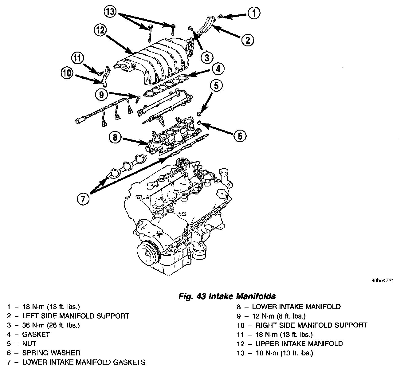 Install manifold bolts and tighten to 18 Nm (160 in. lbs.).