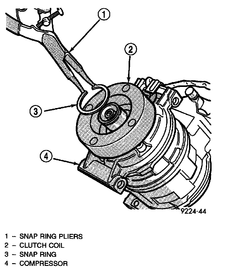 5. Remove snap ring retaining field coil onto compressor housing. Slide field coil off of compressor housing.