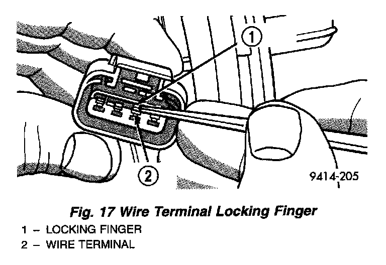 4. Using a small screwdriver lift locking finger away from terminal and push terminal out of connector.