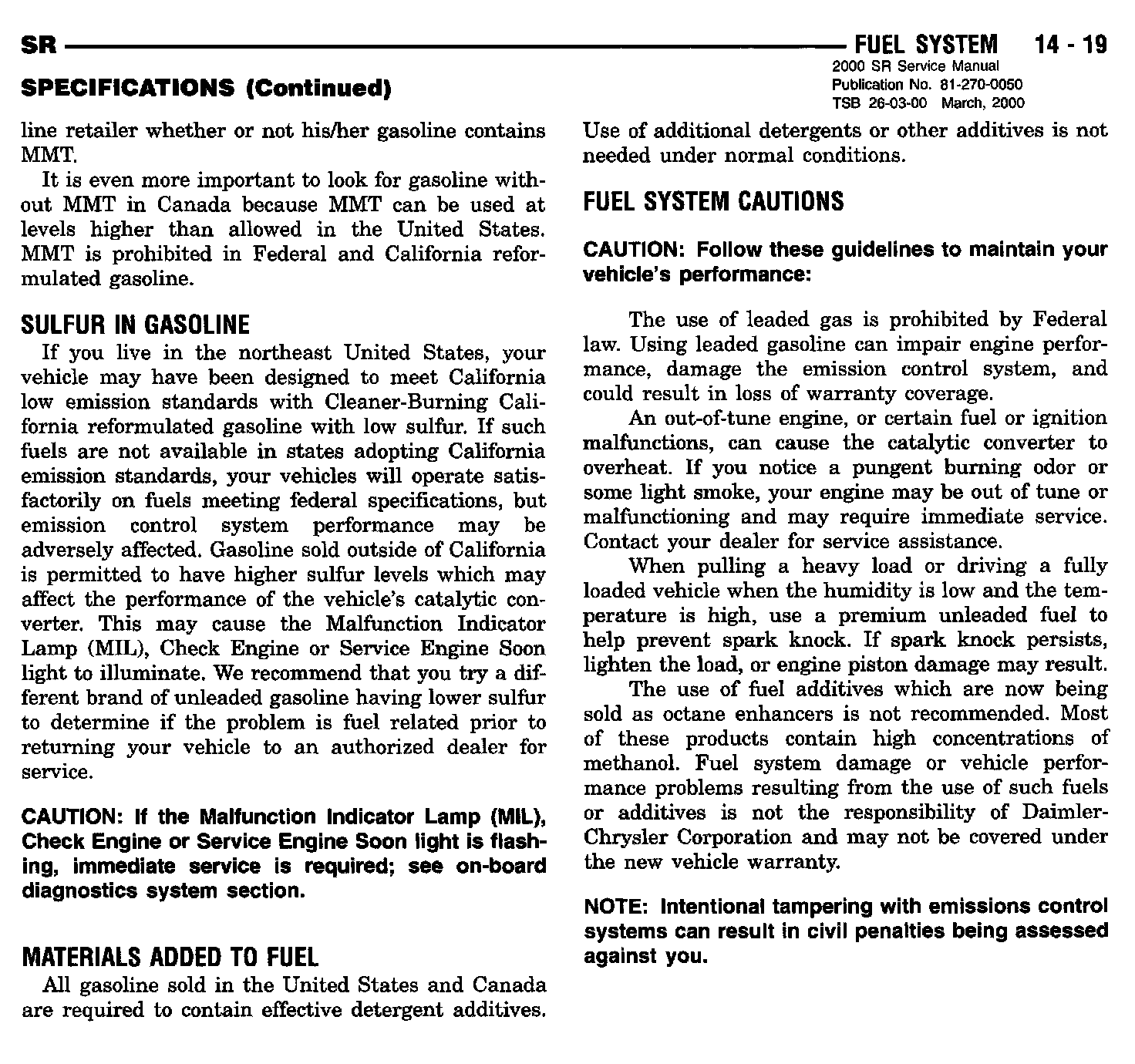 2000 Viper Service Manual - Publication Number 81-270-0050