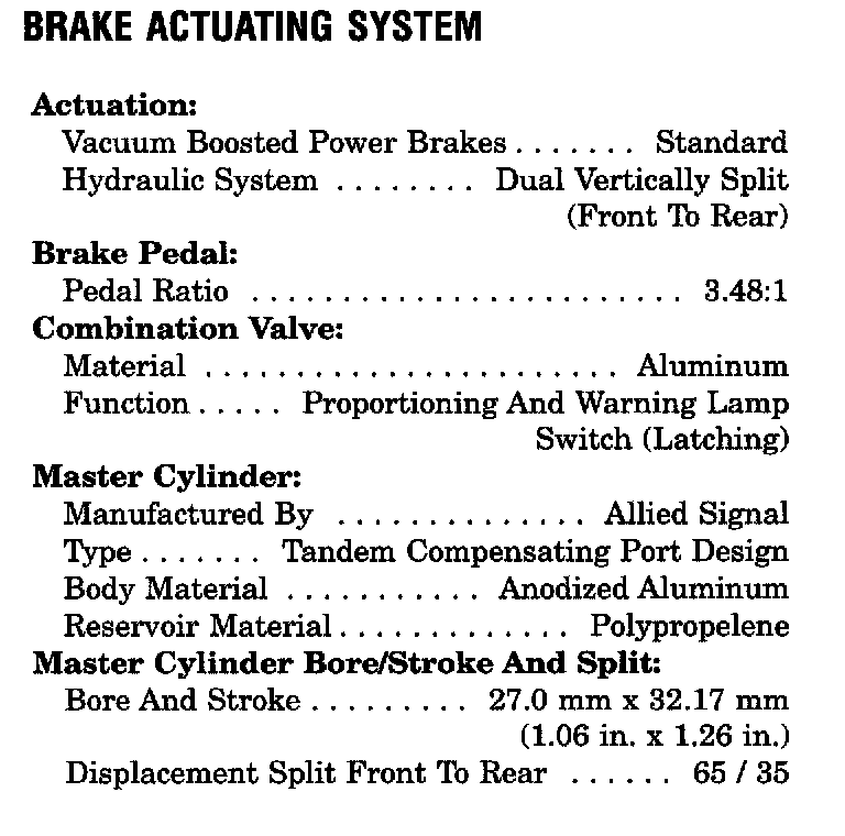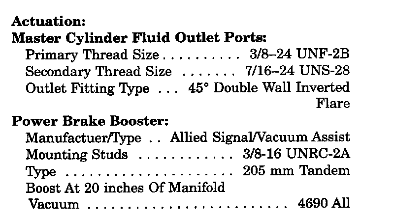 Brake Actuating System Specifications