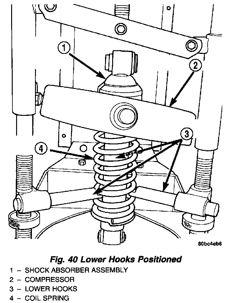 For the disassembly and assembly of the shock absorber assembly, use strut spring compressor, Pentastar Service Equipment (PSE) tool W-7200, or the equivalent, to compress the coil spring. Follow the manufacturer's instructions closely.