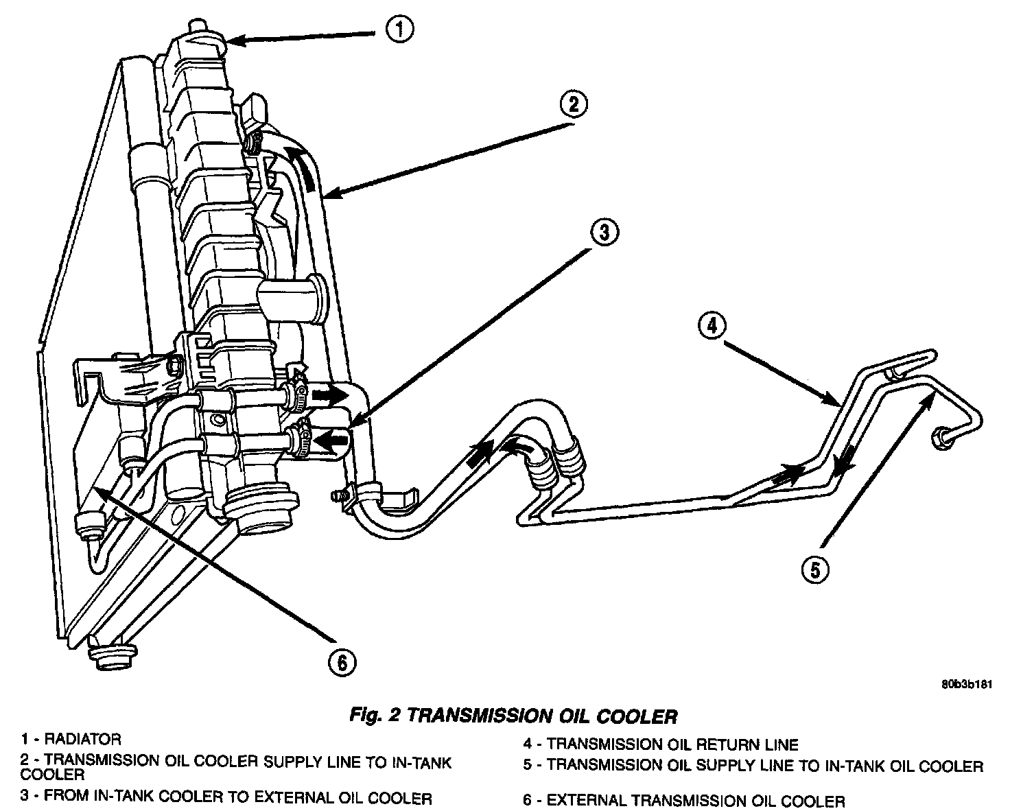 1. Disconnect the oil return hose at the external trans cooler (Fig. 2).