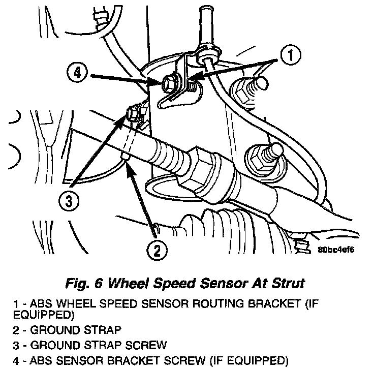3. Remove the speed sensor cable grommet from the retaining bracket attached to the brake hose on the outside of the frame rail.