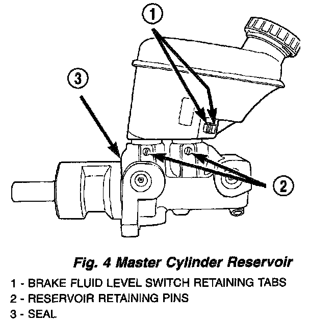 1. Remove the vehicle wiring harness connector from brake fluid level switch in master cylinder brake fluid reservoir.